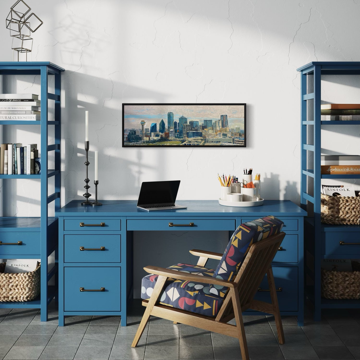 Cotton Clouds and Steel – 20x60 Original Oil Painting of Dallas Skyline
