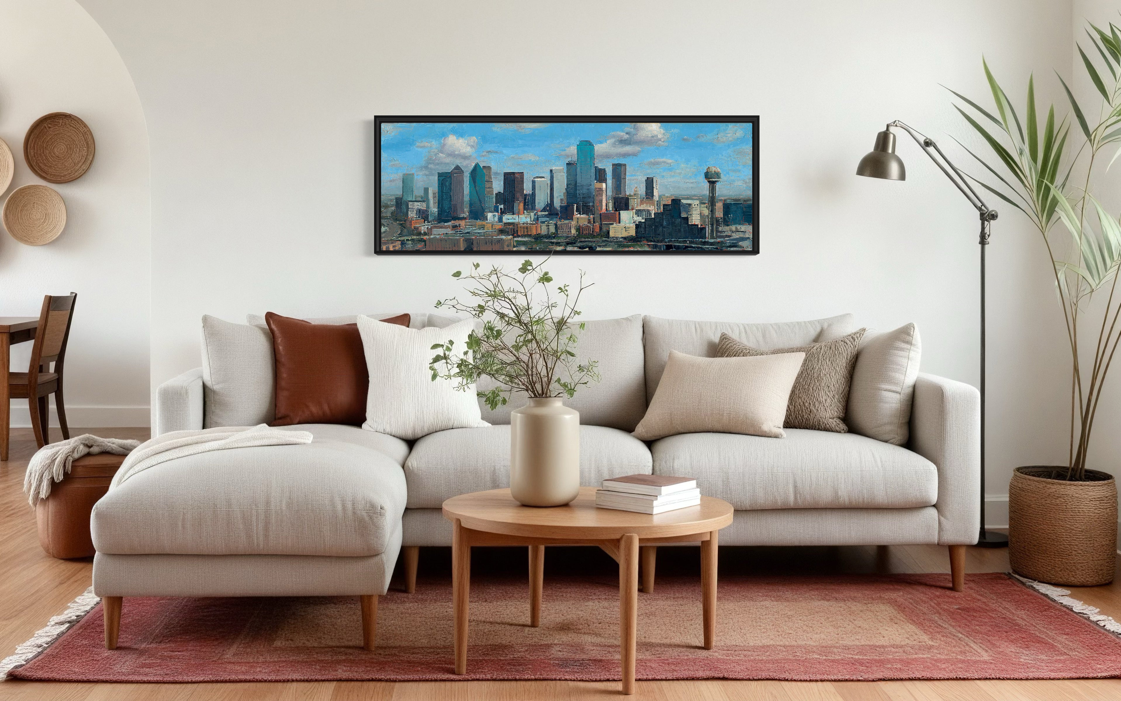 Cotton Clouds and Steel – 20x60 Original Oil Painting of Dallas Skyline